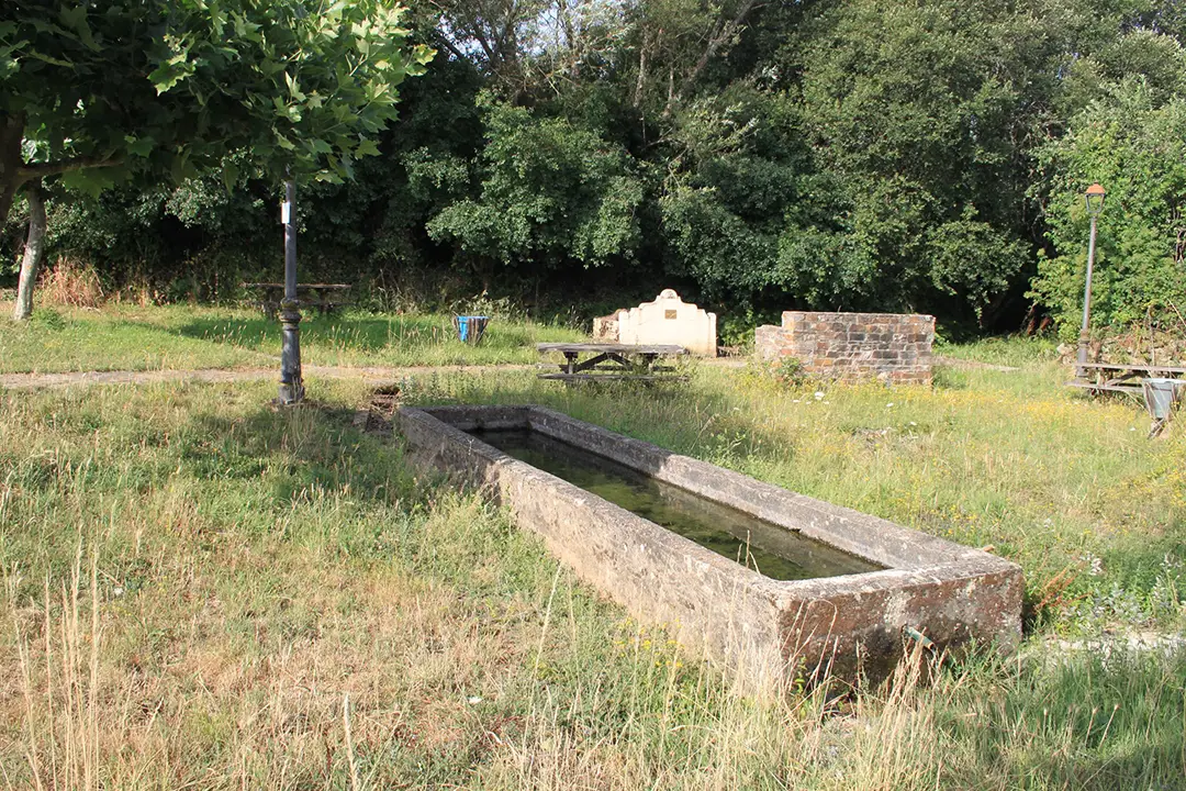 Espacio al aire libre equipado con barbacoa, papeleras, mesas y bancos que cuenta con una fuente de agua potable, rodeado de un entorno natural que lo convierte en un punto de partida o descanso para los visitantes.